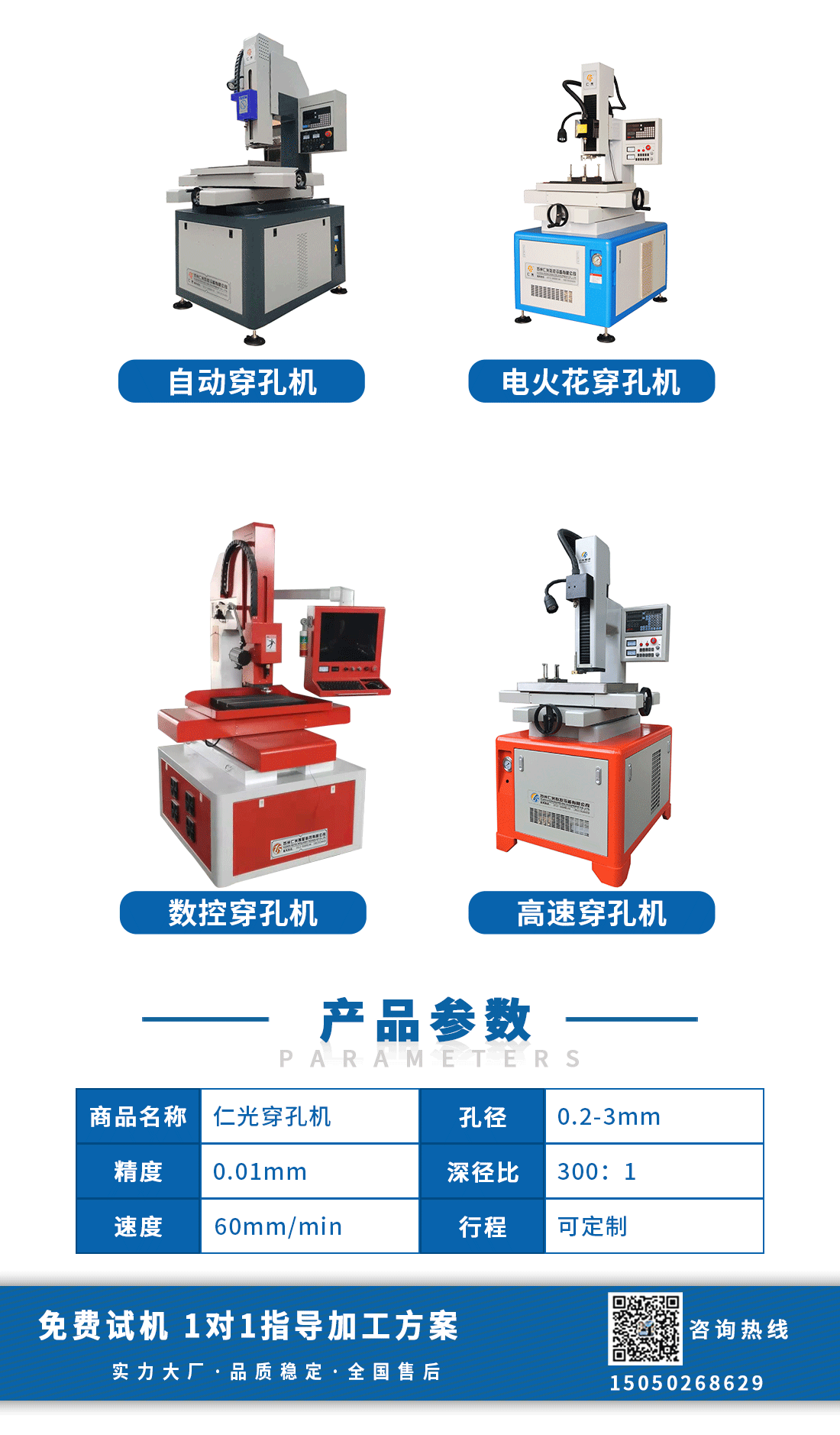 蘇州仁光細孔穿孔機系列采用精密直線導軌,導向精度高。該系列機床適用于加工不銹鋼,淬火鋼,硬質合金,銅、鋁等各種導電材料,加工孔徑φ0.3-φ